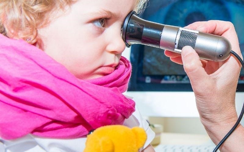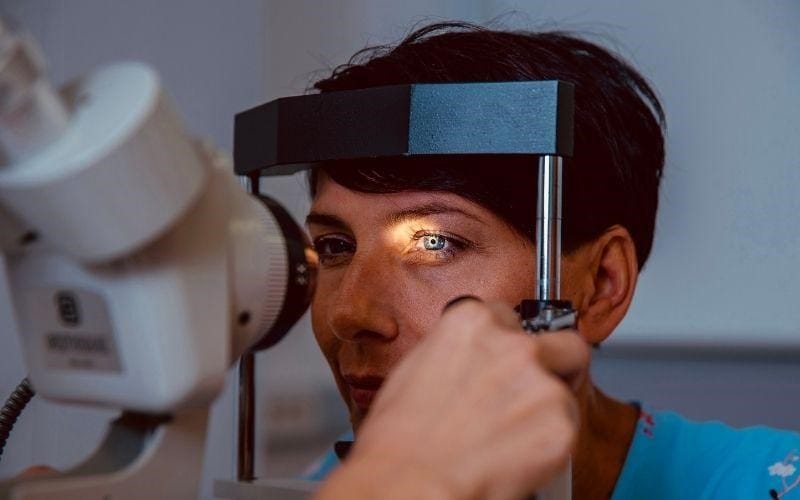 Iridolog uporablja posebno lupo ali kamero za opazovanje šarenice.